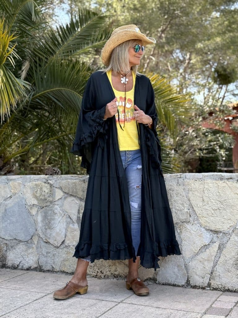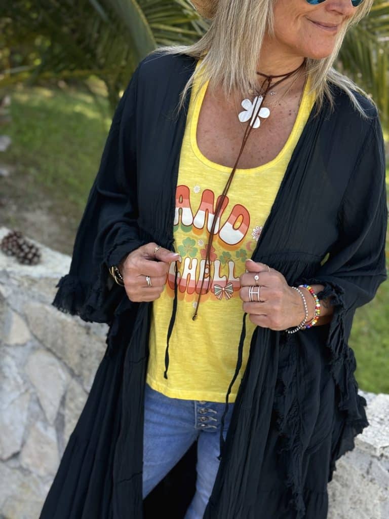 Découvrez notre sélection de prêt à porter féminin bohème chic : tee shirt, sweat, robe longue, jupon, jeans, kimono, maille … De quoi vous composer le dressing hippy chic de vos rêves !