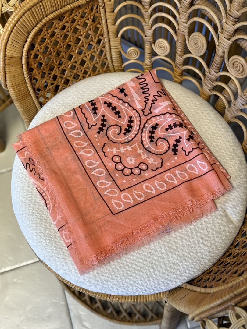 Bandana Colors, forme carrée, en voile de viscose imprimé contrasté paisley.