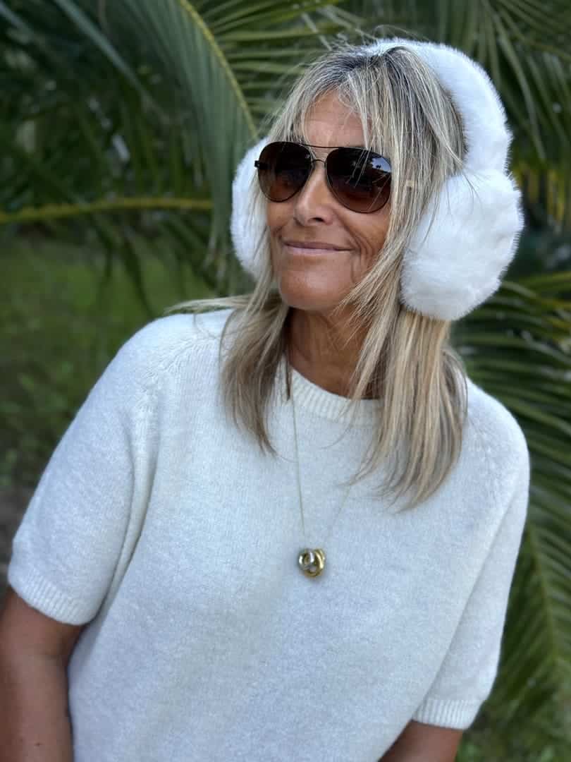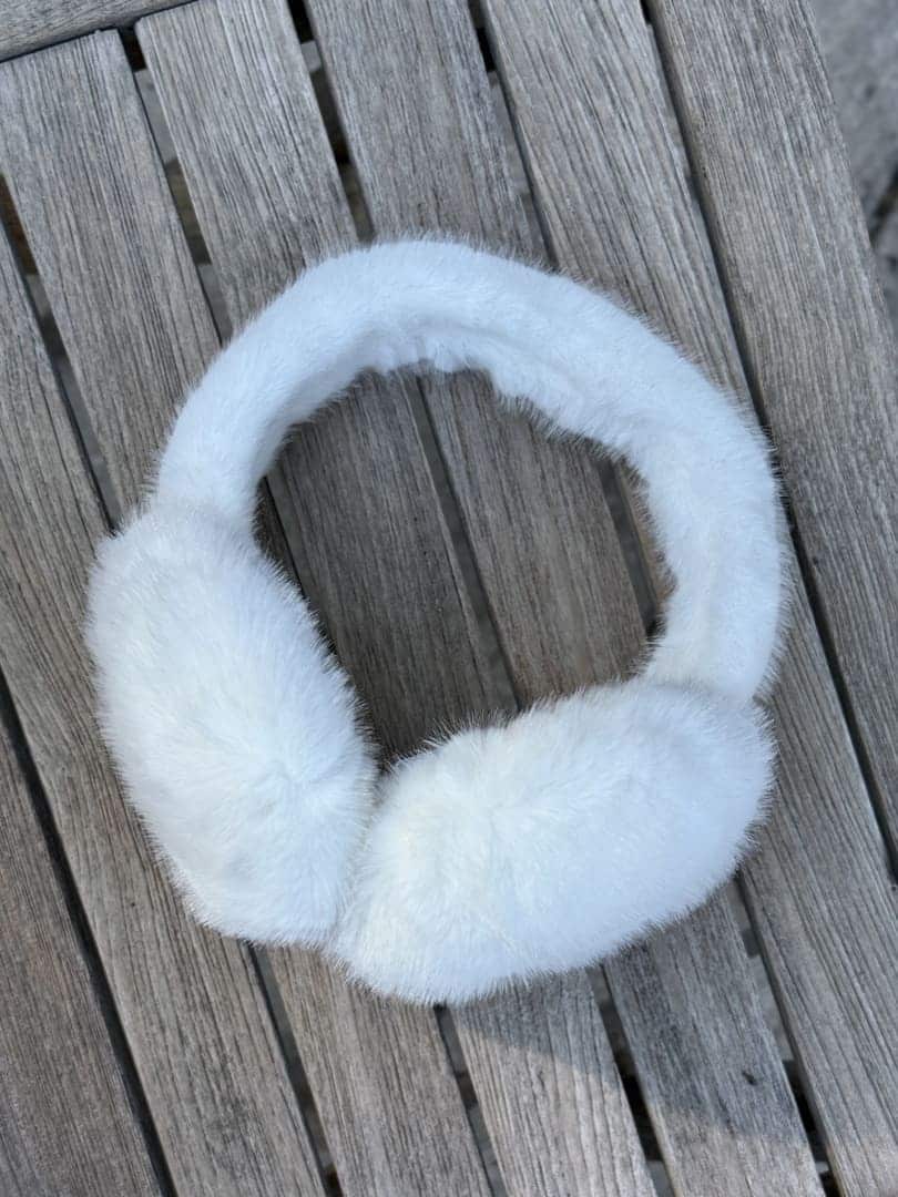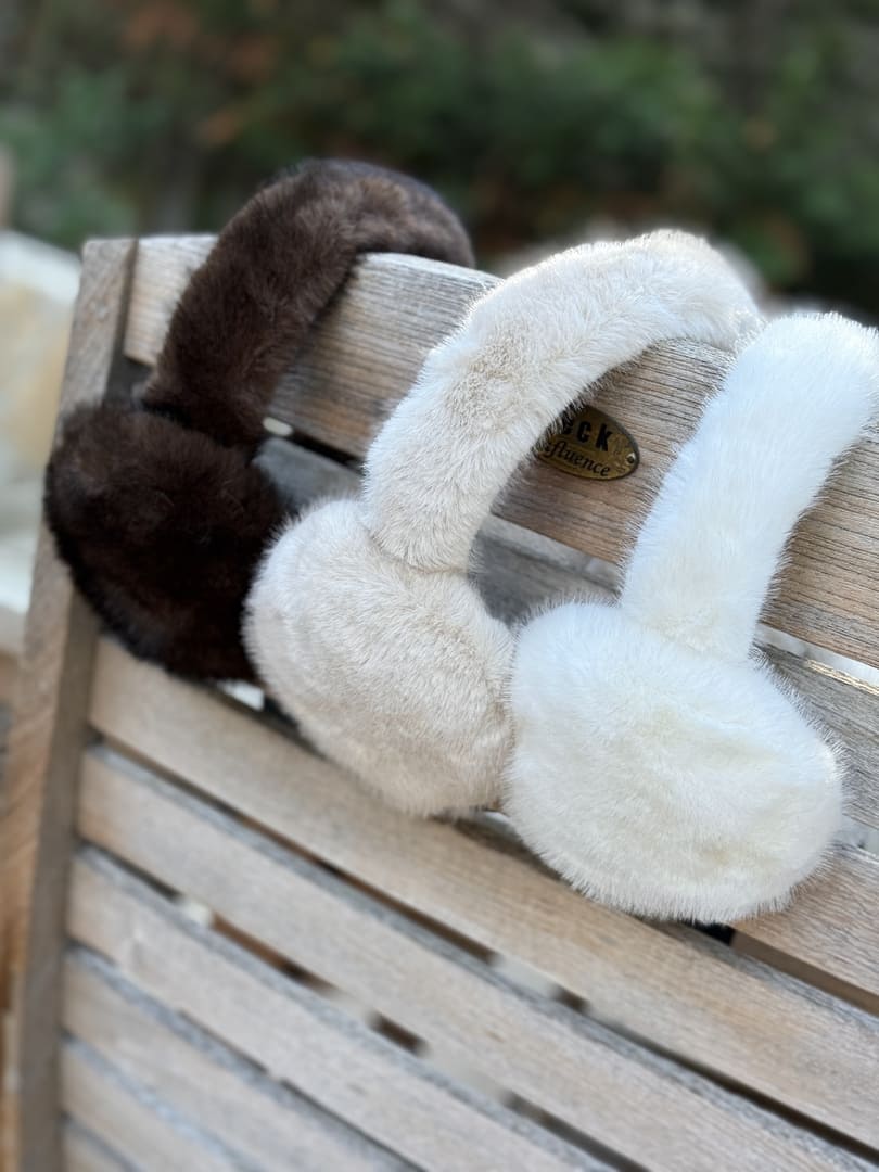 Cache-oreilles Fluffy en fourrure synthétique toute douce ivoire. Possibilité de replier les oreilles à l’intérieur pour le ranger.