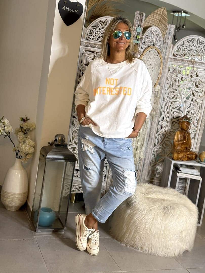 Florence mesure 1m70, fait un 40 et porte la taille S